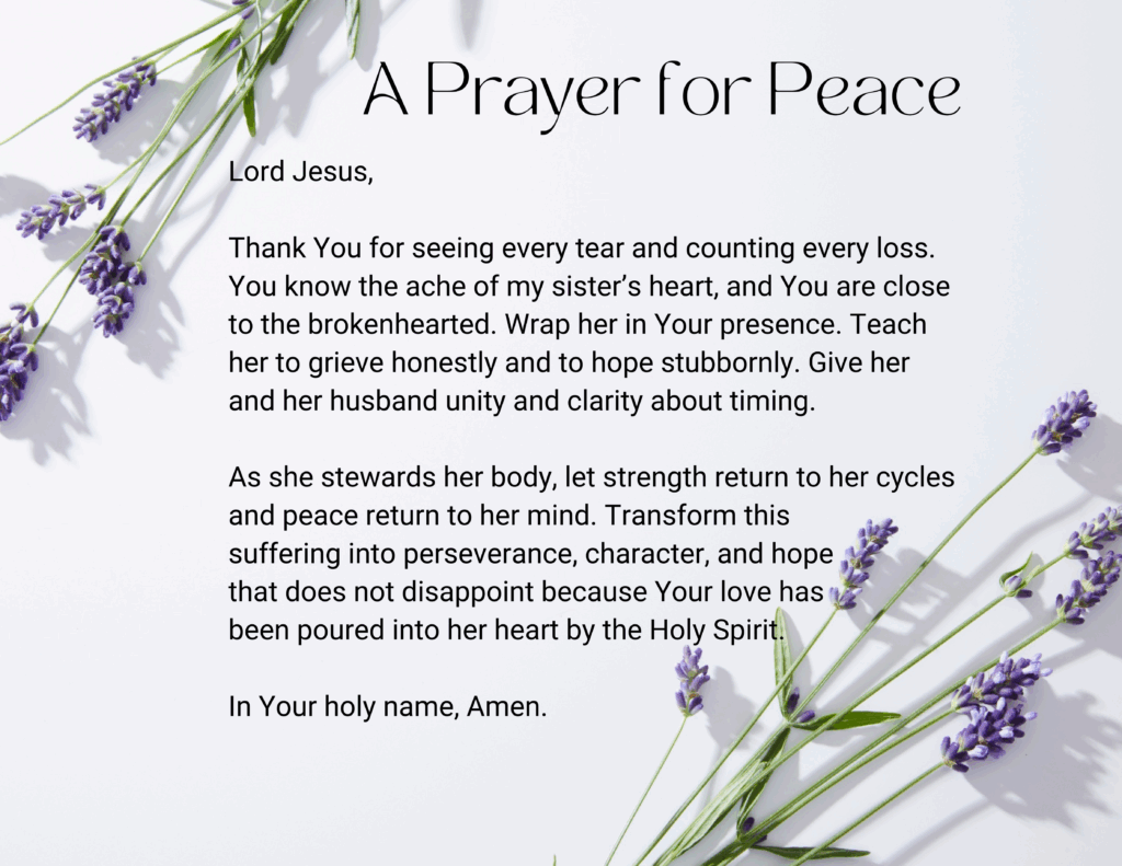 Fear after loss is honest. But fear doesn’t get the final word. When the “what if it happens again?” thought arrives, meet it with truth: God’s character has not changed. Your body is not your enemy; it’s your ally in need of care. You are allowed to set a gentle pace. You’re building something you cannot yet see – perseverance, character, and hope.