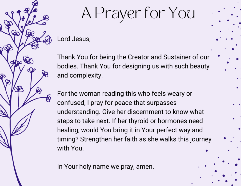 Your body was created by a loving, intentional God who sees every cell, every hormone, every heartbeat. He designed your thyroid. He designed your womb. He designed your story. Sometimes healing takes time. Sometimes it takes courage to advocate for yourself. But through it all, the Lord is with you, guiding every step.